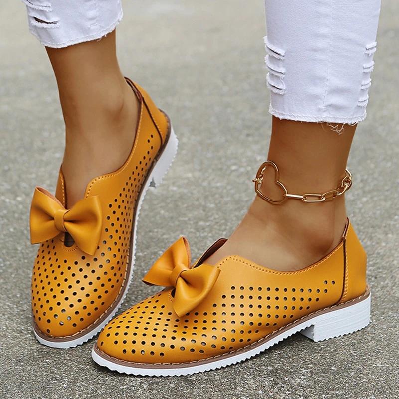 Women Casual Elegant Simple Pu Bowknot Hollow-out Flat Loafers