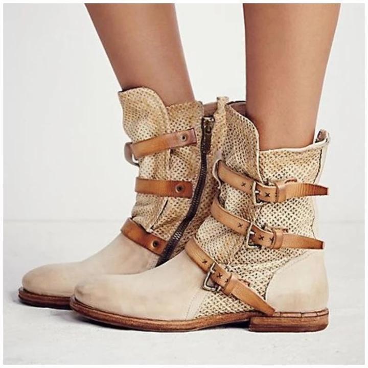 Women Casual Flat Heel Buckle Boots
