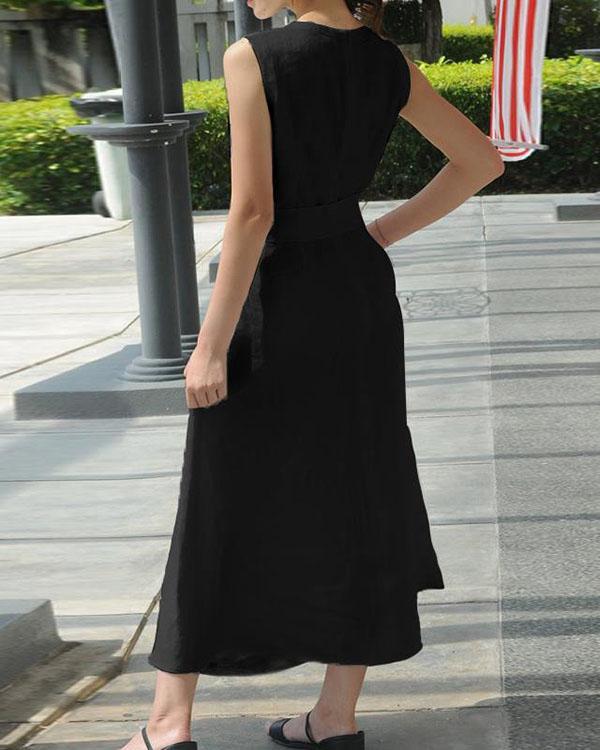 Women Casual Sleeveless V-neck Evening Maxi Dress