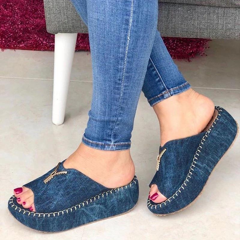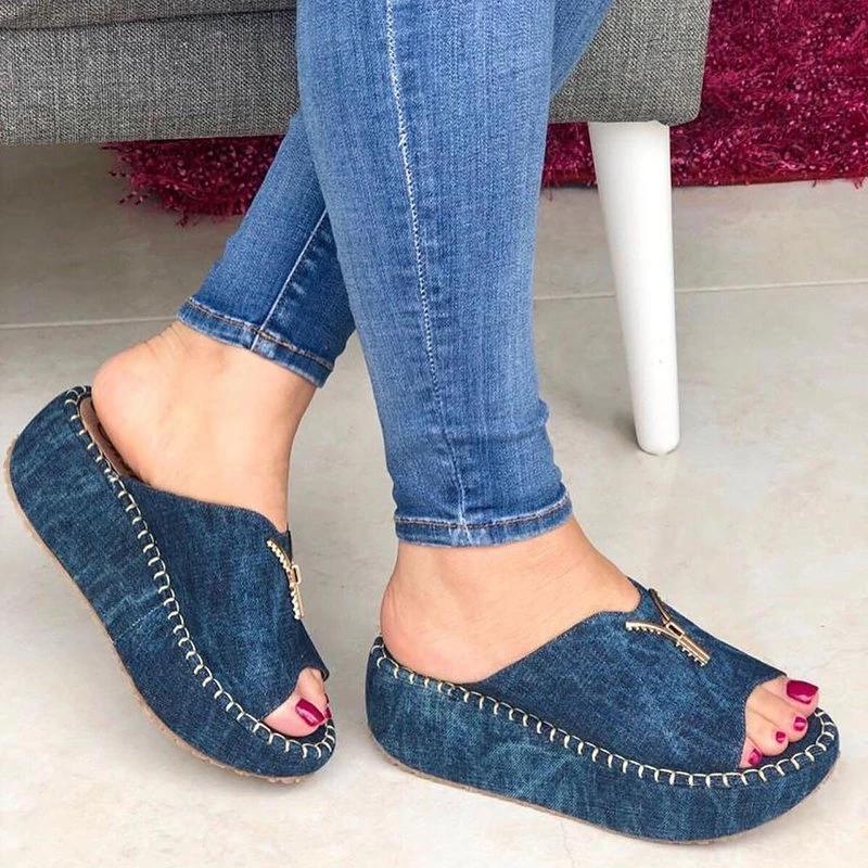 WOMEN CASUAL SUMMER SLIP ON ZIPPER WEDGE SANDALS