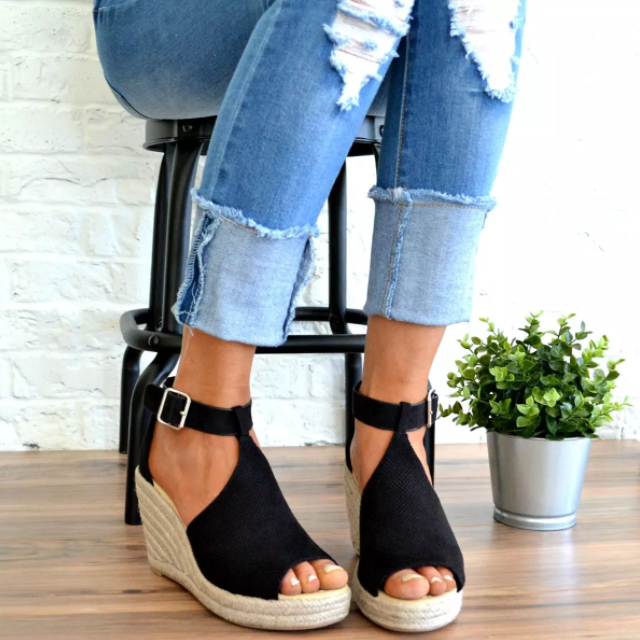 Women Chic Espadrille Wedges Adjustable Buckle Sandals