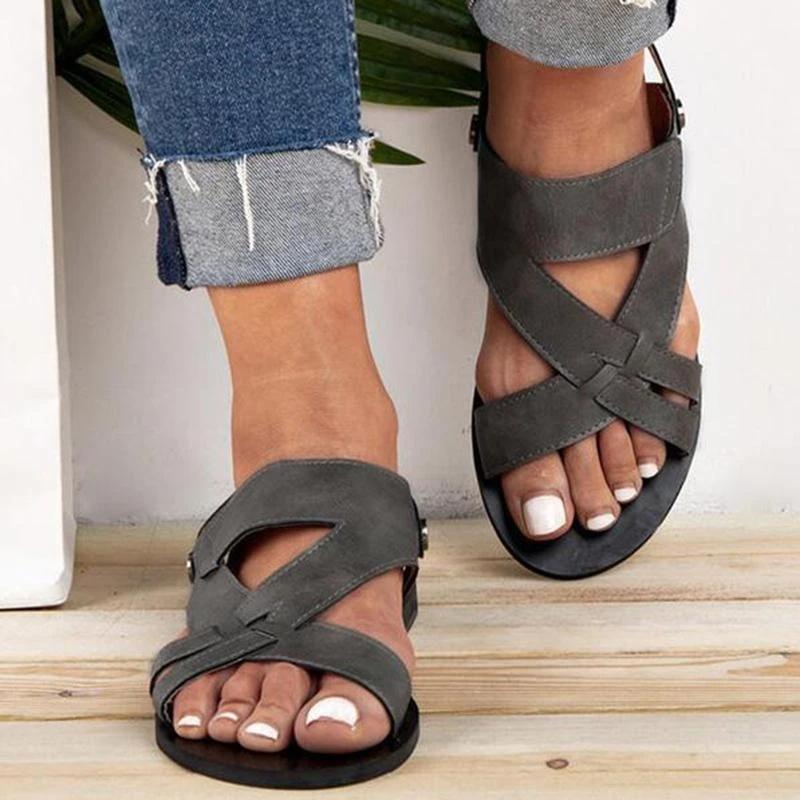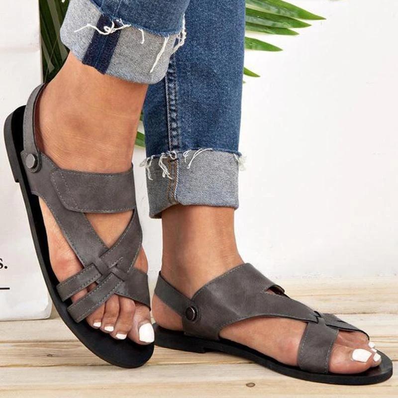 Women Chic Solid Hollow out Flat Strap Sandals