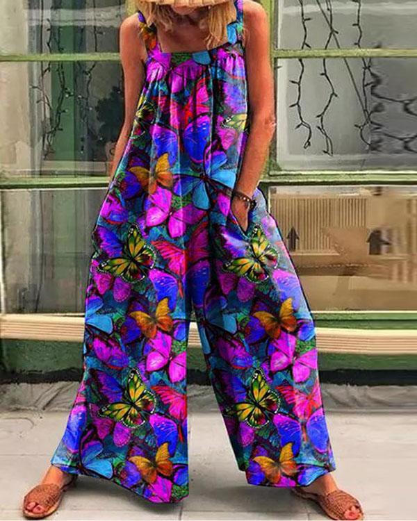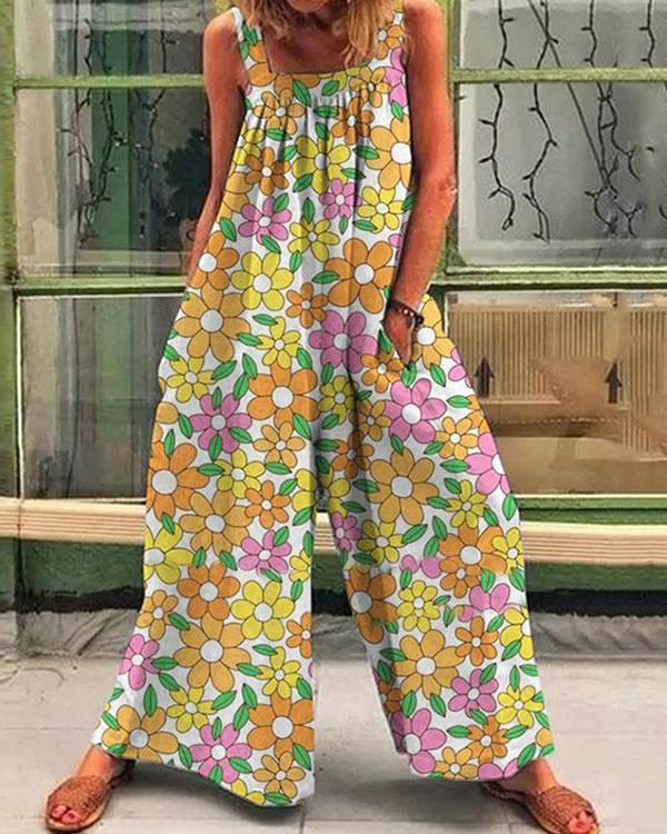 Women Colorful Multiflora Print Casual Loose Jumpsuit