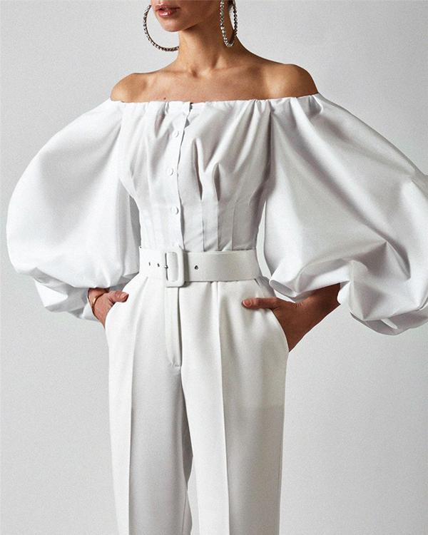 Be the first to review “Women Cotton Lantern Sleeve Off Shoulder Button up Blouses”