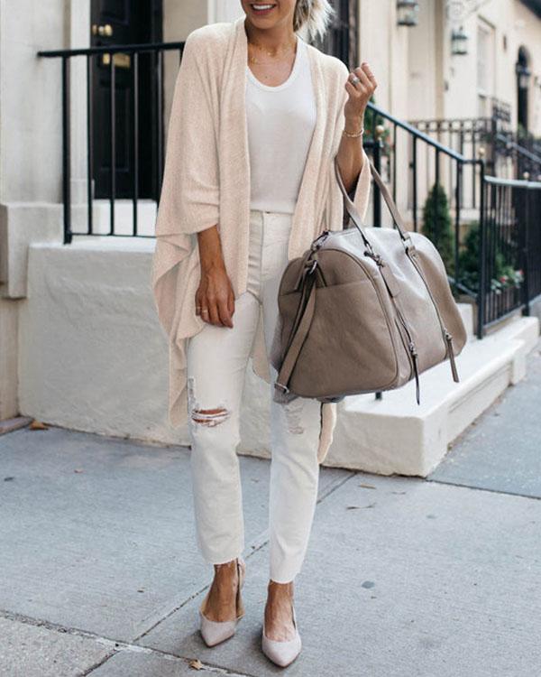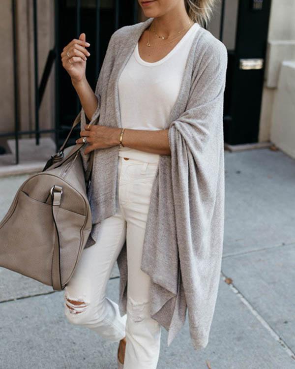 Women Early Fall Fashion Irregular Batwing Sleeve Knit Cardigan