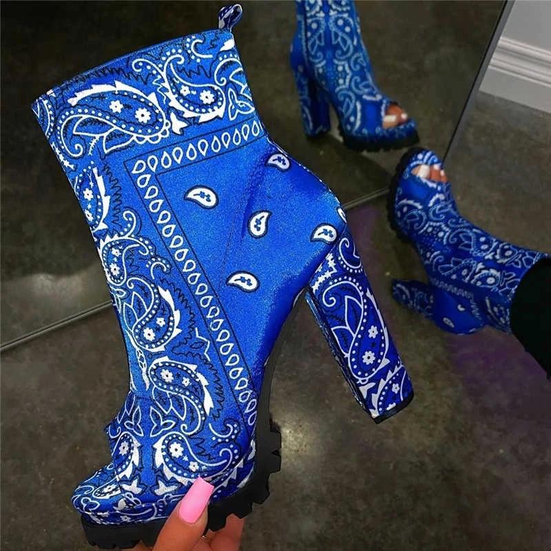 Be the first to review “Women Trendy Characteristic Pattern Pointed Toe Slip On Mid Heel Boots”
