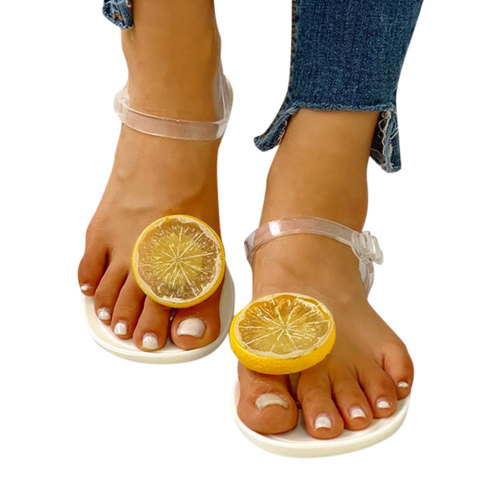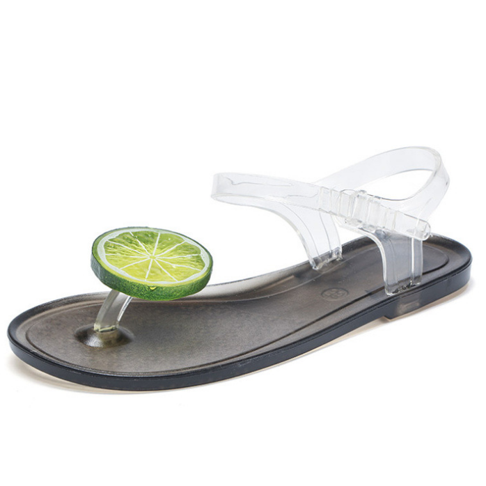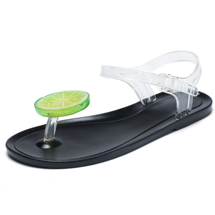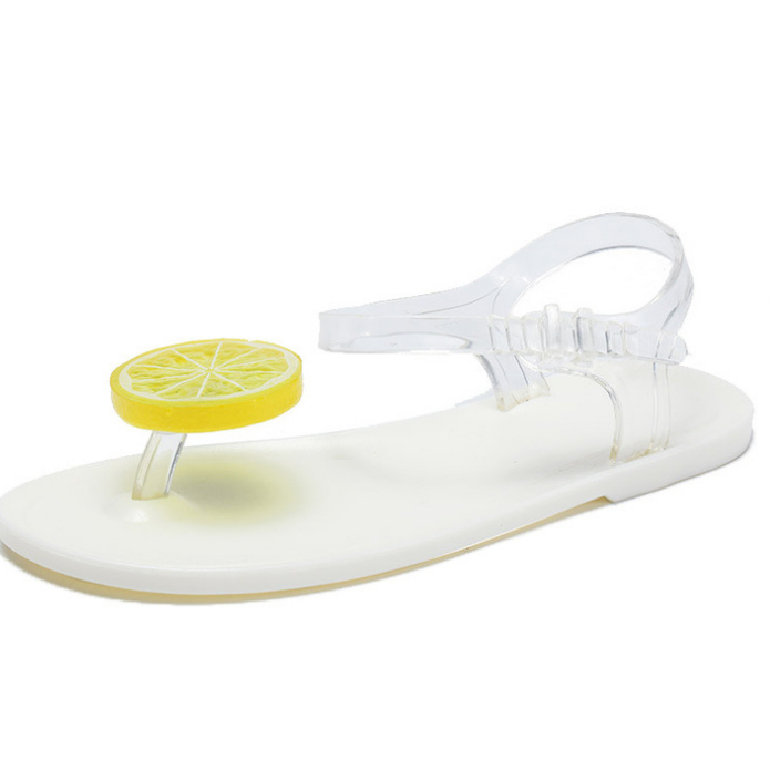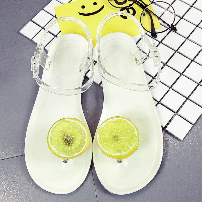 Women’s Fashion Transparent Strap Side Open Lemon Pattern Flat Beach Sandals