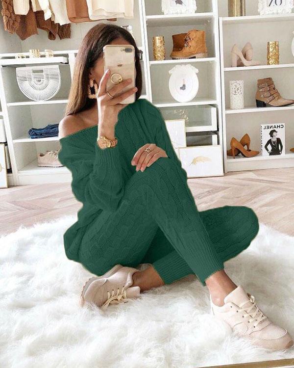 Women’s Stylish Round Neck Two Piece Casual Warm Knit Wear Suit Sets*