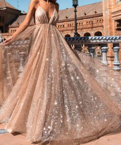 Womens V Neck Solid Sleeveless Irregular Sequin Lace Backless Party Dress