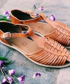 Womens Handmade Flower Buckle Thick Heel Sandals